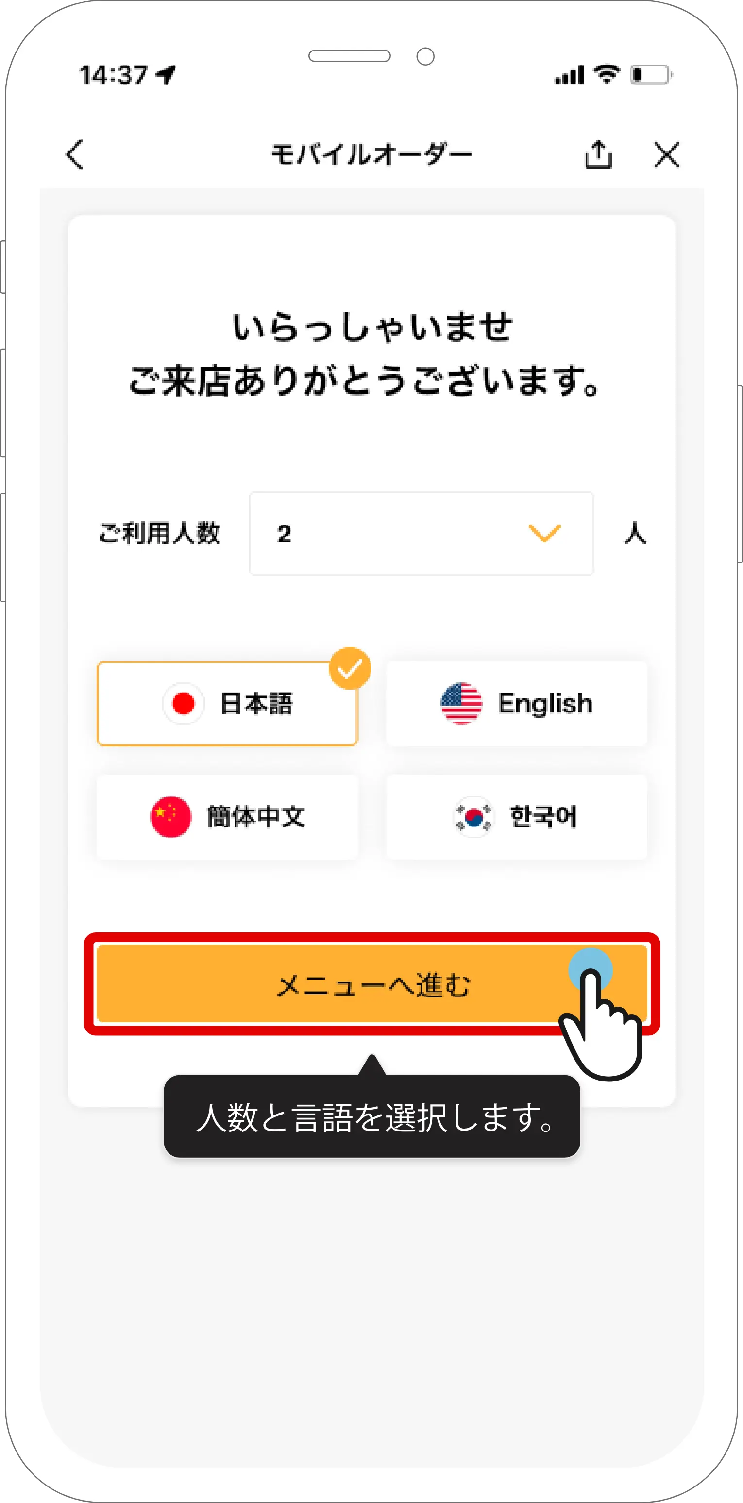 モバイルオーダーを体験してみましょう